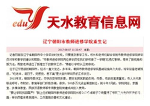 春植嘉木,秋有果香。2017年8月7日,正值立秋,中國教育報“應(yīng)時”發(fā)表了記者劉玉采寫的文章,題目是《遼寧朝陽市教師進修學(xué)院重生記》。當(dāng)日,中國教育新聞網(wǎng)、東北新聞網(wǎng)、中國校長網(wǎng)、中國搜索教育網(wǎng)、天水教育信息網(wǎng)等網(wǎng)站紛紛予以轉(zhuǎn)發(fā),在行業(yè)內(nèi)迅速引起強烈反響。