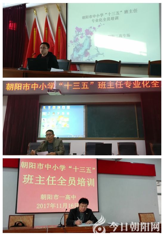11月15日,朝陽市中小學“十三·五”班主任專業(yè)化全員培訓在朝陽市第二高級中學繼續(xù)進行,培訓活動由二高中主任王新強主持,參加培訓的班主任和青年教師共有98人。